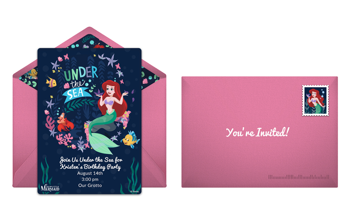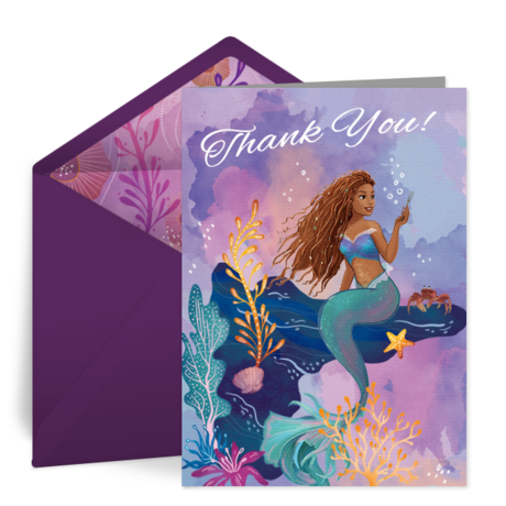After the celebration, send Little Mermaid Thank You eCards to let guests know how much you appreciate them attending. Personalize the cards and send via text or email in minutes.