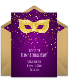 Mardi Gras is a tradition celebrated throughout the Gulf Coast of the United States and in many other parts of the world. However, you don’t have to be a New Orleans resident to take part in the fun! Host a Mardi Gras party in your home, backyard, or at a local venue. Invite your friends and family and take part in the unique customs of Fat Tuesday with online Mardi Gras invitations to quickly manage RSVPs and easily communicate with your guests.