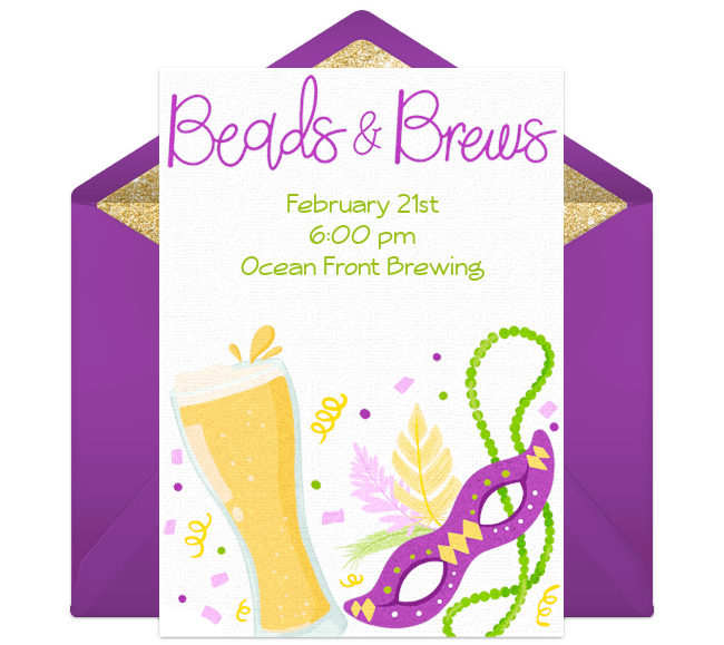 Ready to get started? Browse gorgeous Mardi Gras invitations, customize your favorite, and deliver by text or email instantly!