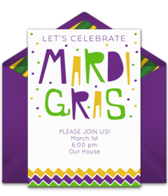 If you plan to host a party or are still just exploring the options, let Punchbowl be your source for Mardi Gras party ideas. In addition to party inspiration, recipes, and decorations, you can also send festive Mardi Gras invitations right from your phone.