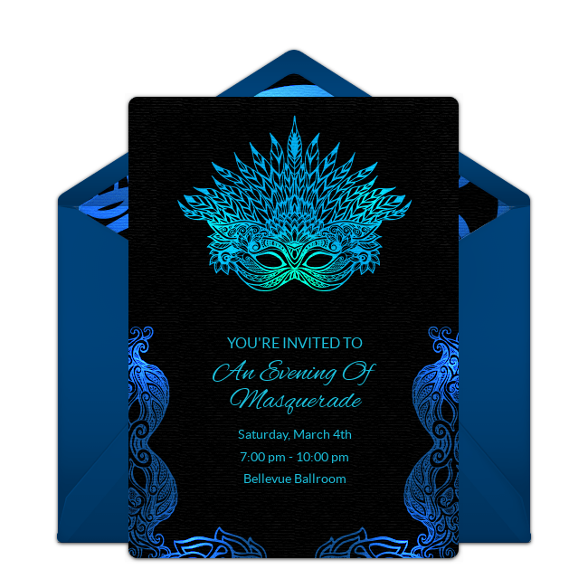 Send your guests online masquerade party invitations to inform them about the special occasion. Make sure your invitations are colorful and elegant to reflect the theme. A nice touch is to include a mask on the design. Use wording on the invitations such as “Masquerade Magic” or “Masked Ball.” Don’t forget to include other important details such as the time, place, and location.
