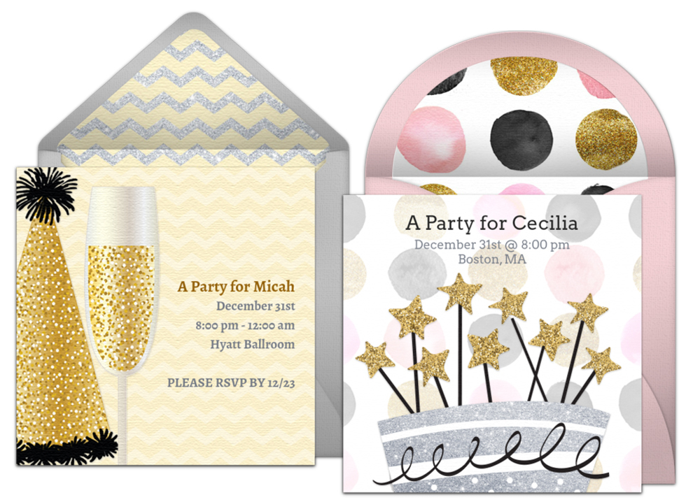 - NYE Birthday Invitations. Set the tone for your party with beautiful, online New Year's Birthday invitations. Customize your digital invitation, send it to your guests via text or email, and easily keep track of RSVPs. Guests can open your invitation right from their phone and RSVP in seconds.
