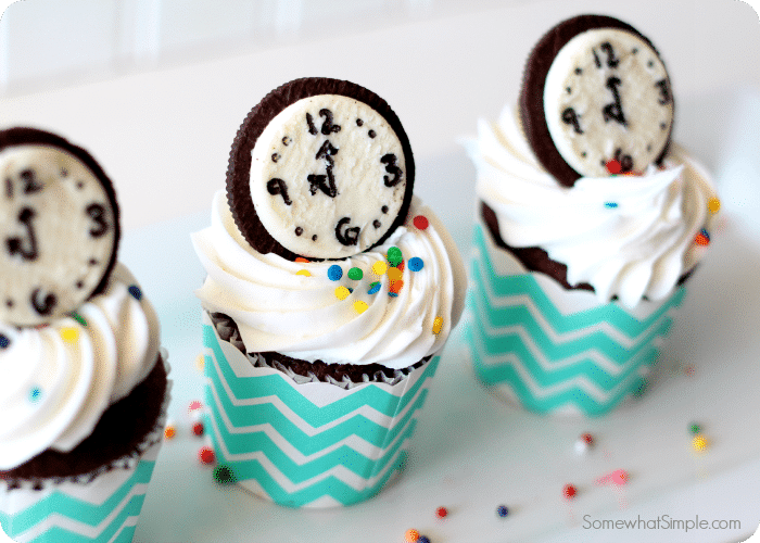 - Pre-Game Party. Consider hosting an early evening get-together so that guests can still attend late-night festivities. For decorations, silver, gold, and black are the go-to colors for New Year’s Eve parties and can easily be incorporated into your birthday party through balloons, streamers, and tableware. Finger foods like cheeseburger sliders, cocktail meatballs, and cheese crostinis are perfect for keeping guests happy but not too full. Set up a station for guests to DIY New Year’s Eve crowns, hats, or headbands that they can wear later that evening. Lastly, treat guests to a little something sweet and “toast” the birthday honoree with gorgeous Bubbly Champagne Cupcakes.