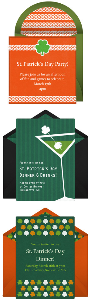 If you plan to host a St. Patrick's Day party, one of the first items on your to-do list is to send St. Patrick's Day invitations. To send invitations quickly and efficiently, send beautiful digital invitations from Punchbowl. Once you create your event, you'll be able to easily keep track of RSVPs and you won't need to worry about tracking down guests' addresses.