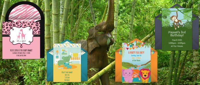 Jungle and Elephant Baby Shower Invitations