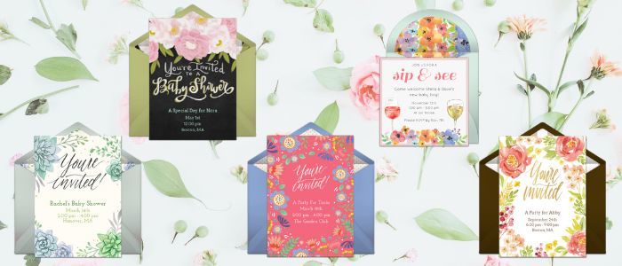 Planning a beautiful and elegant baby shower to suit the wonderful mama-to-be? Choose one of our gorgeous floral baby shower invitations. We have a wide range of floral options - from muted blue and green succulents to bright and beautiful summer florals and watercolors, and pretty chalk-art style florals. Customize the event details to add the location, the time, the RSVP details, and much more. When you're ready, you can use your email or phone address book to add contacts and send your invites immediately!