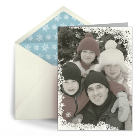 The New Year photo cards on Punchbowl also have the look and feel of traditional paper cards. Design your own by uploading a favorite photo from the past year and then taking advantage of personalization capabilities such as envelope liners, custom postage, and rubber stamps. You can add your own greeting to your New Year’s picture cards and then schedule them to arrive in your recipients’ mailboxes anytime you’d like.