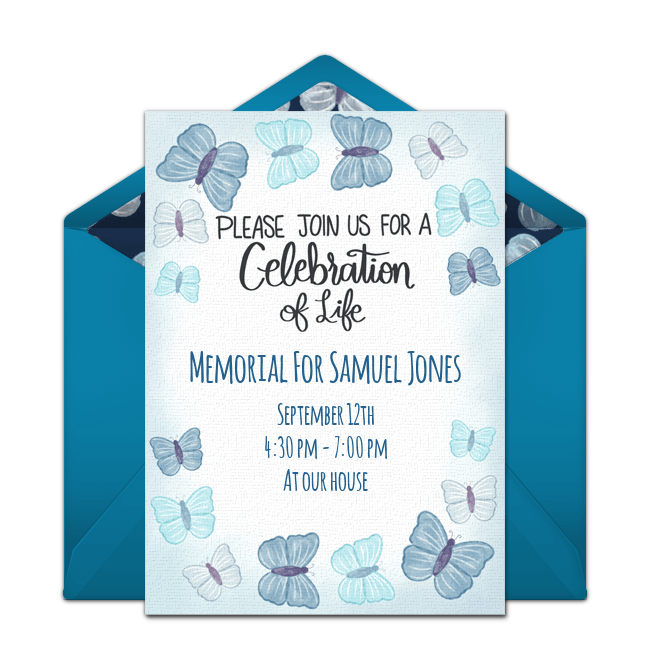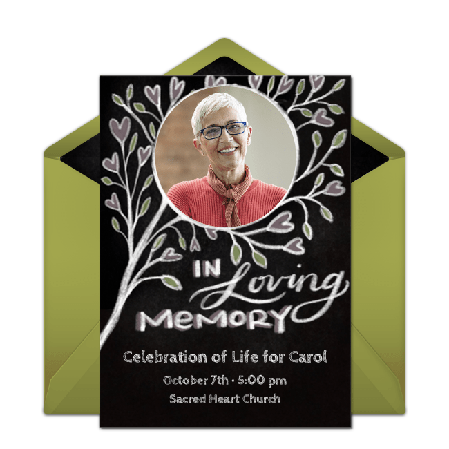 When you've decided on a theme, a location, and the date of your loved one's Celebration of Life, it's time to customize and send the invitations. We offer several beautiful online invitations that you can customize - even adding a photo.  Here are a few of the options available: