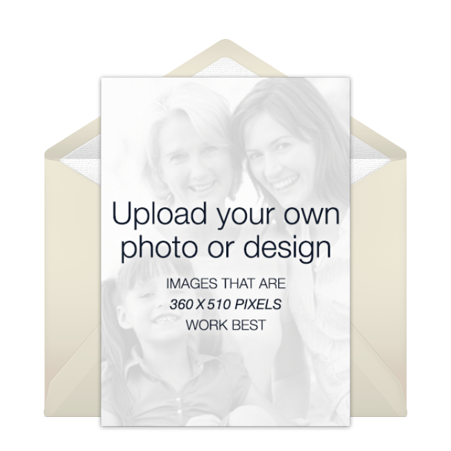 We also offer a wide range of Upload Your Own invitations that enable you to provide your own photos or artwork, while using our technology to send the invitations by email or text and manage RSVPs online.