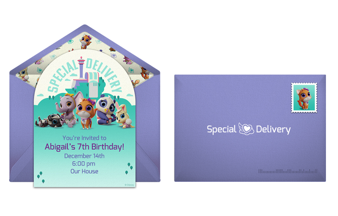 Host an action-packed birthday party with a T.O.T.S. (Tiny Ones Transport Service) theme! From fun-loving online invitations to inspiring party ideas, Punchbowl can help you plan a memorable party. Get started with this one-of-a-kind T.O.T.S. online invitation. This exciting design features Mia, Pablo, Precious, Ellie, and Blondy. It’s the perfect way to kick off a super birthday celebration.