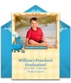 Send online preschool graduation invitations to close family, friends, and fellow “graduates” with their parents. Customize digital graduation invitations and deliver them by text or email instantly. You can even upload a picture of your graduate to photo graduation invitations.