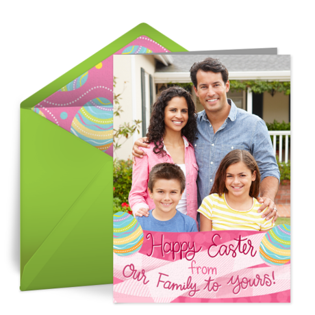 Punchbowl offers a wide range of beautiful, customizable, and free Easter designs. Choose a design, add you own personal Easter message, and send via email without the cost of paper cards and postage. Whether you're looking for religious Easter cards, Easter photo cards, or Easter birthday cards, you'll definitely find something you like!