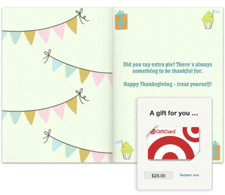 - Gift Card: Include a gift card from a brand they'll love for an extra special surprise. Choose from several different brands and easily add your gift card inside your greeting card.
