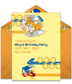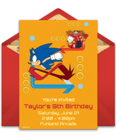 Set the stage for your party with online Sonic birthday invitations that feature favorite characters like Knuckles, Tails, and Doctor Eggman. Add important event details to your Sonic invitation and customize the fonts, colors, and more. You can even upload a picture of the birthday kid to a photo Sonic birthday invitation! Once your invitation is ready, send it by text or email and easily track RSVPs online.