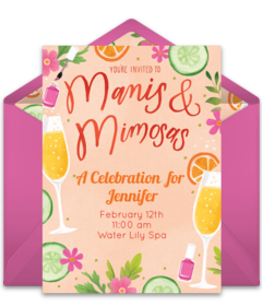 Spring is all about starting fresh. Treat you and your friends to a spring spa renewal party at a local spa or at your home. Browse gorgeous spa party invitations and send your favorite in minutes. Book with the spa or technicians in advance so everyone can get facials, massages, manicures, and pedicures to revive their bodies and minds. This celebration of spring is sure to be one that will be an annual event.