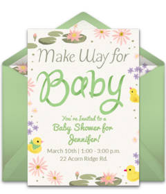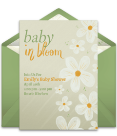 Send out digital spring baby shower invitations six to eight weeks before the party. Add important event details to your favorite baby shower invitation, deliver by text or email, and easily manage RSVPs online.