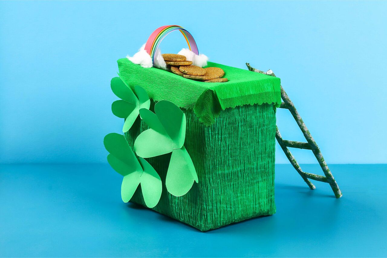 Have kids decorate a cardboard box with construction paper, tissue papers, washi tape, markers, or stickers. Kids should hide a small treasure for the leprechaun to lure them in, such as gold glitter, candy, or cookies. Have the kids set their newly decorated traps out before they go to sleep on March 16 then let them awake to a heap of chocolate gold coins or fun stickers left behind by the leprechaun.