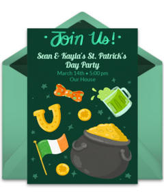 If you plan to host a St. Patrick’s Day party to celebrate, be sure to set the stage with online St. Patrick's Day invitations. Customize your favorite design and send right from your phone in minutes!