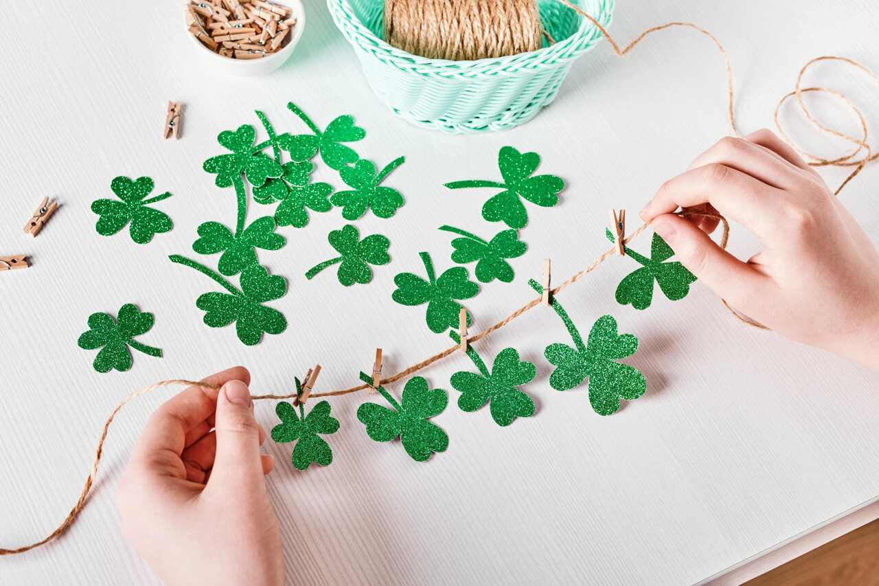 St. Patty’s Day is all about the luck of the Irish. To play off this idea, use shamrock decorations throughout your party space to add an Irish touch. One creative way to do this is to make shamrock coasters. Use green construction paper to cut out shamrocks large enough for a cup to fit on. Once you’ve cut out your shamrocks, laminate them to make them sturdy and waterproof. Place the shamrock coasters on tabletops throughout the party for your guests to use. Alternatively, you can use your shamrocks to create cute clover garland to hang throughout your party space.