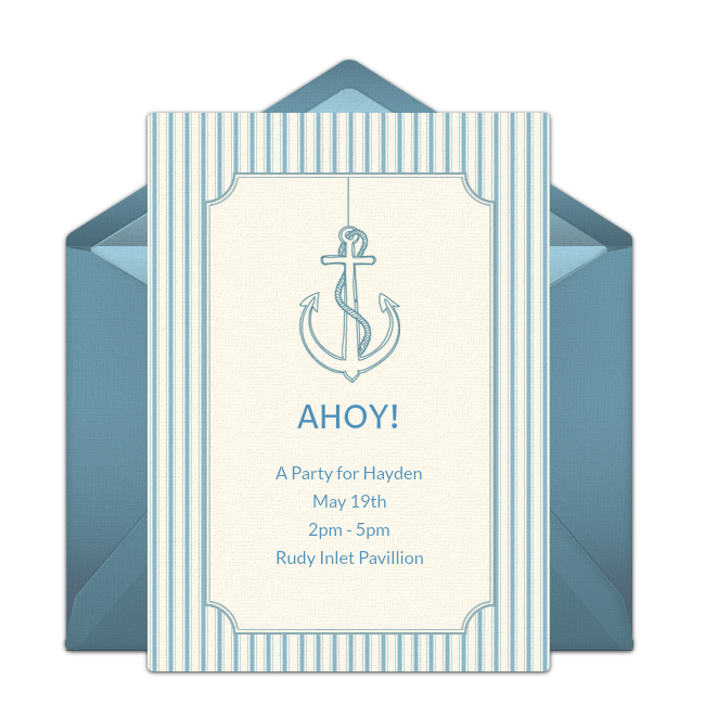 Set sail for cool waters with a nautical baby shower theme! To start, add important event details to this Nautical baby shower invitation featuring an anchor or this Red & Blue nautical baby shower invitation featuring cute boats. Once you send your invites, decorate with classic nautical colors like navy, red, and white. Incorporate toy boats, anchors, and whales or fish throughout your space. Serve various seafood like crab cakes, tuna sandwiches, and lobster rolls and provide mini deli sandwiches for those who might not like seafood. Finally, let guests leave with cute anchor key chains to remember the special celebration.