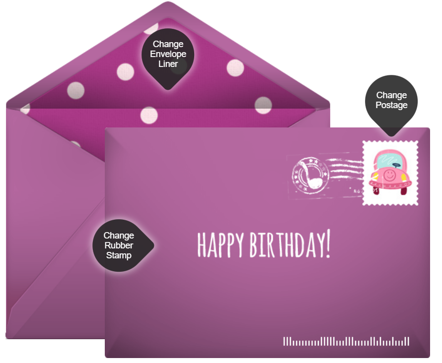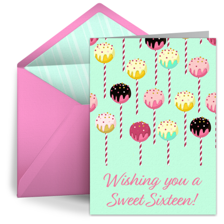 Punchbowl offers free Sweet Sixteen birthday cards that lets you send personalized Sweet Sixteen birthday wishes. Customize colors, fonts, the postage stamp, envelope liner, and rubber stamp then add your own very special Sweet Sixteen greetings in a written message or video message. You can even include a digital gift card to your birthday card. When your card is ready to send, deliver it instantly by text or email.
