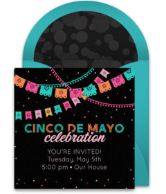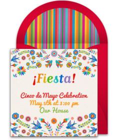 To help with menu planning, get an accurate head count with digital Cinco de Mayo party invitations. Customize your favorite invitation, send it by text or email, and easily manage RSVPs online.