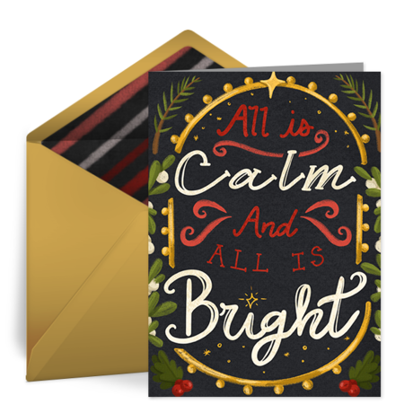 • All is Calm: Choose free Christmas cards based on your favorite Christmas Carols, like this one featuring lyrics from Silent Night.