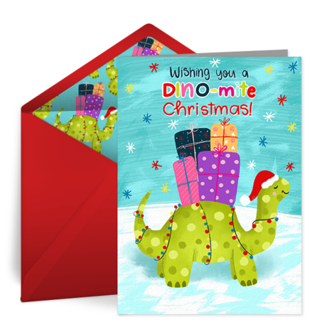 • Dino-mite Christmas: Attach a digital gift card from retailers like Target or the Apple Store and help your young ones celebrate with these adorable Dinosaur-themed Christmas Cards!