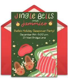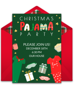 The holiday season can be a busy and stressful time of the year. Invite guests to relax, decompress, and get comfy with a Christmas Pajama Party invitation. Share important event details and encourage attendees to wear their favorite holiday pjs and slippers.