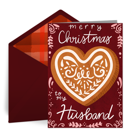 Let your husband know that he's sweeter than a Christmas cookie! Personalize the written message inside this beautiful gingerbread cookie Christmas card and deliver by text or email in minutes.