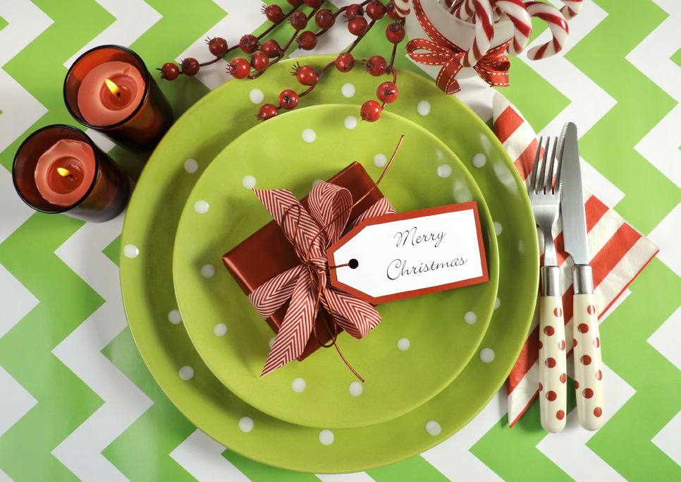 2. Add green or white holiday plates, and red striped paper napkins.
