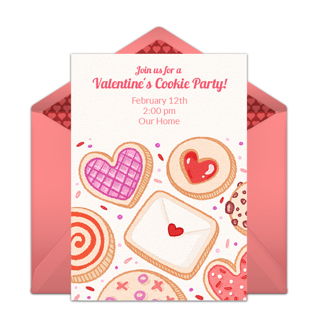 Baking is a labor of love, so be sure to package up your delicious Valentine’s Day cookies to share with your friends and family. Finally, if you're hosting a Valentine's Day gathering, be sure to send digital Valentine's party invitations to let guests know about important event details and easily manage RSVPs online. valentines-cookie-party-invitations.png389.96 KB