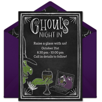 We’ve gotten used to Zoom celebrations, so why not Halloween, too? Plan a “Ghouls Night In” with an invitation that includes a Zoom link.