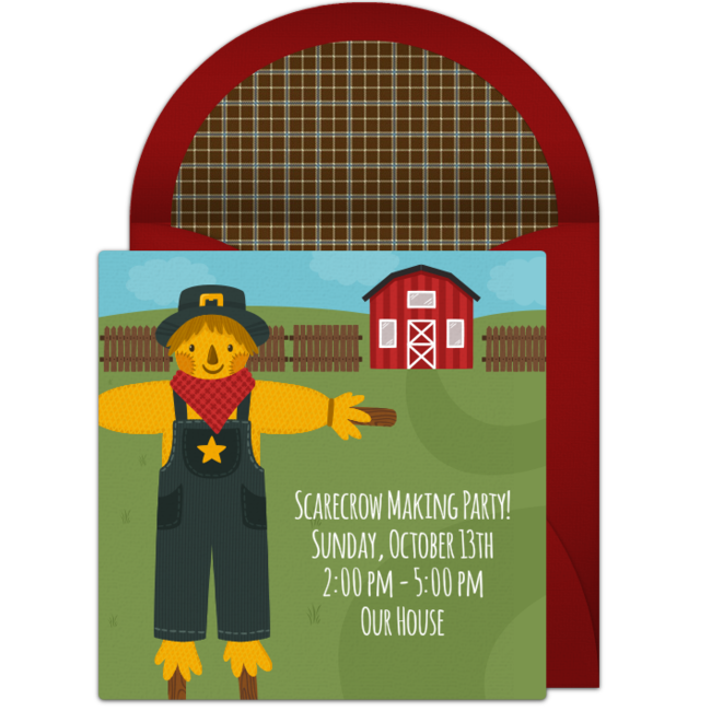 Place the scarecrow somewhere where friends and family will see it when they enter your home. Hosting a fall party? Send fall-themed online invitations for an easy way to gather guests.