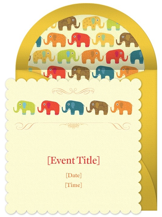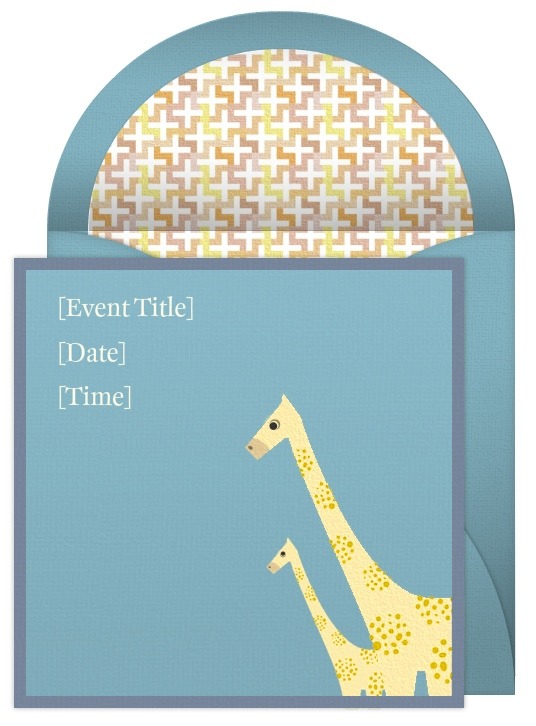 - Invitations: Punchbowl offers a variety of zoo baby shower invitations that are ideal for this theme. Two popular zoo designs are the giraffe invitation and the elephant invitation (shown below). Once you select the zoo themed invitation that you like best, customize the invite with the shower details, including registry information and send via email to your guests.
